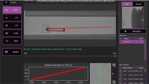 高度なサブピクセルルーチンにより、ネイティブ画像解像度がトラッキングに不十分な場合でも効果的な物体追尾が可能になり、より正確な運動学的データが得られます。
