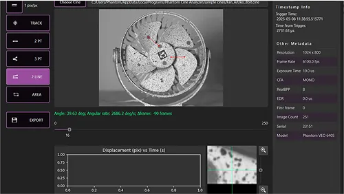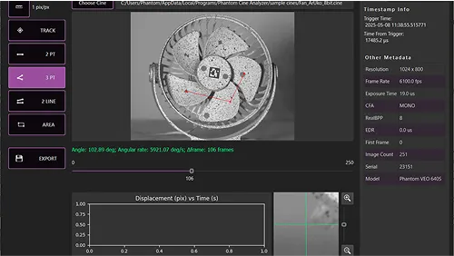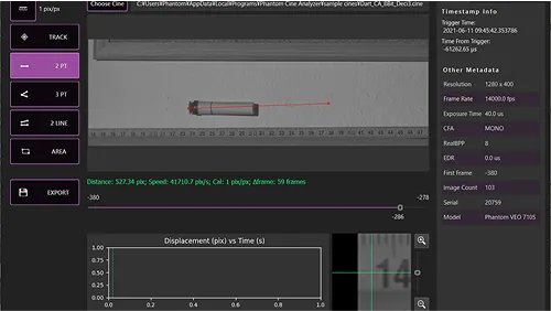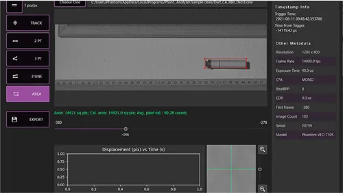 ハイスピードカメラPhantomで撮影した生データ(Cineファイル)を直接画像解析することができます。